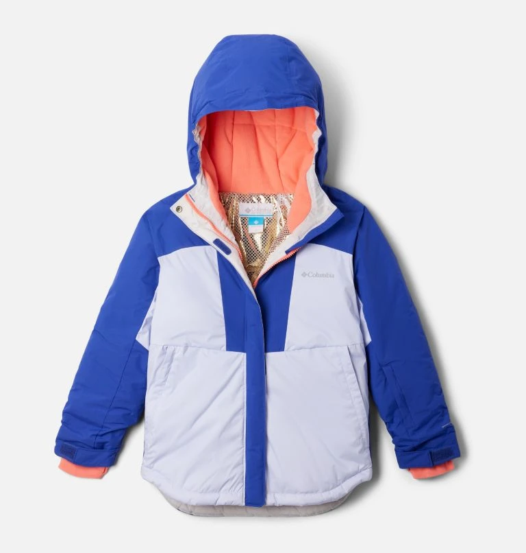 A helmet-compatible hood, powder skirt, and more are ready for a day on the slopes, plus she’ll stand out in the fun geometric print.