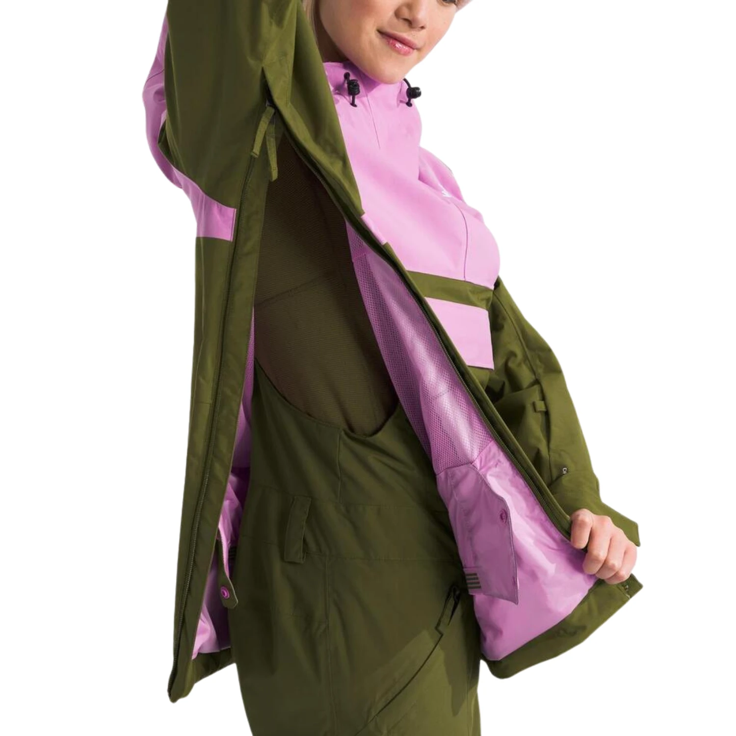 - Helmet-compatible, adjustable hood with drawcord